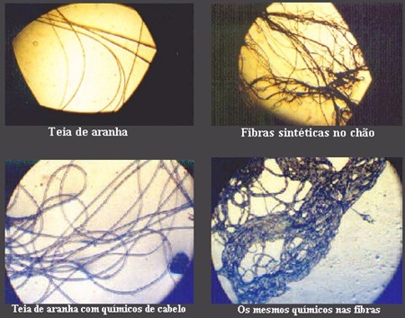 Administraram ácido sulfúrico a teias de aranha, e também ás fibras encontradas no chão, para comparar as diferenças entre ambas.