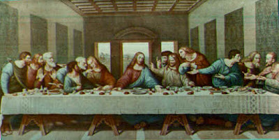 A ordem dos apóstolos na pintura da última ceia está assim: Bartolomeu, Tiago Menor, André, Pedro, Judas Iscariotes e Maria de Magdala, depois vem Tomé (com o dedo apontando pra cima), Tiago Maior, Felipe (que na verdade é João Evangelista na pintura), Mateus, Judas Tadeu e Simão o Zelote (que na verdade não é Simão na pintura, mas sim João Batista).