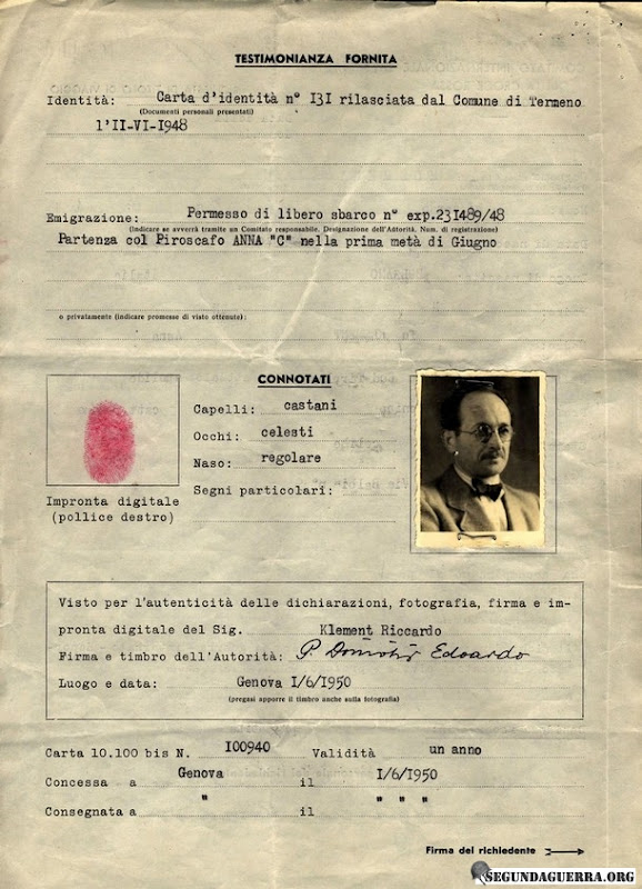 partiu para a Argentina em 1950, onde residiu sob o nome de Ricardo Klement,